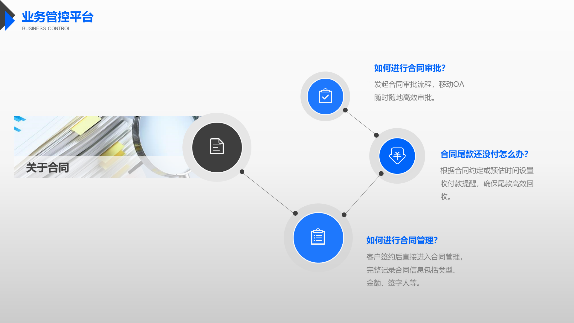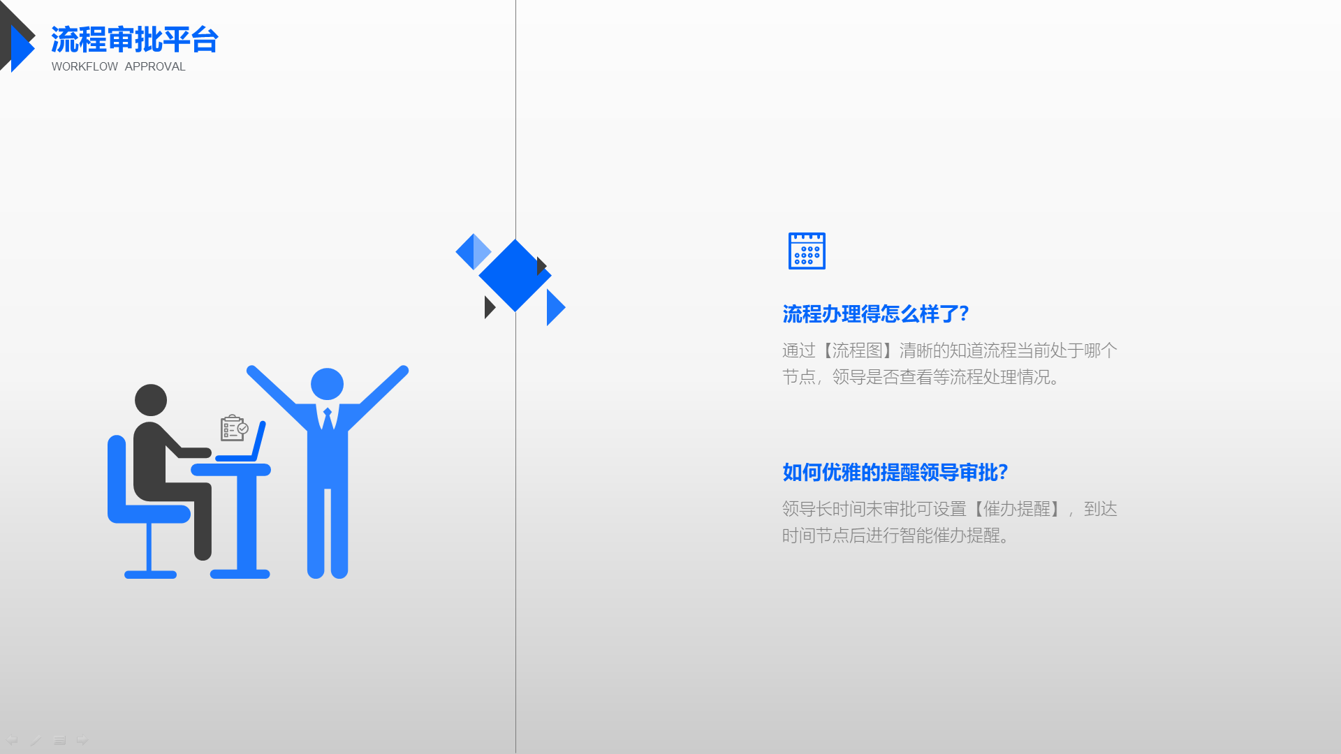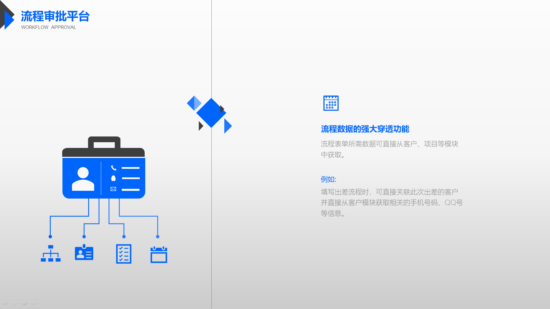 让协作更合规、更高效,通过流程与制度、知识、流程、数据、报表间的关联与融合,批中强化合规管理、知识学习、数据共享,决策更科学,协作更高效。
